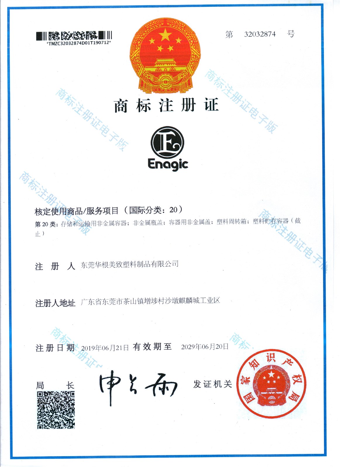 • 商標注冊證書